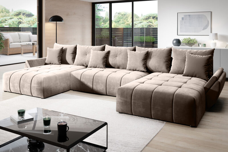 BOOMER U je moderná účková sedačka, ktorá má nadčasový dizajn a skvelo sa hodí do každej obývačky. Je univerzálna, takže prevedenie rohu si vyberiete sami poďla potreby. Sedačka má plastové nožičky.Sedačka je vyrobená v kombinácií vlnovcovej pružiny a PUR peny s hustotou T-30. Účková sedačka BOOMER U disponuje aj rozkladom na ktorý využíva mechanizmus Automat DL. Po rozložení vznikne spacia plocha 149 x 230 cm, vhodná na príležitostné spanie.Rozmery (ŠxVxH) : 385 x 91 x 190 cm. Výška sediska od zeme je 39 cm a výška sedačky bez vankúšov je 71 cm. Hĺbka sediska po vankúše je 64 cm , bez vankúšov 86 cm.Farebné prevedenie : Monolith 04Poťahová látka MONOLITH má špeciálnu ochrannú vrstvu, ktorá chráni pred rýchlym priesakom tekutín, odpudzuje vodu a vytvára drobné kvapôčky na povrchu. Na ošetrenie Vám stačí len jemná handrička alebo papierová utierka. Látka je vyrobená zo 100% polyesteru, je pevná a jemná na dotyk. Je odolná voči oteru a fľakom.Sedačka sa skladá zo štyroch balíkov :102 x 179 x 64 cm – 59kg102 x 179 x 64 cm – 59kg98 x 60 x 134 – 55kg100 x 74 x 50 – 21kgDodávame v demonte.Farebné prevedenie sa môže líšiť v závislosti od nastavenia Vášho PC monitora alebo telefónu.