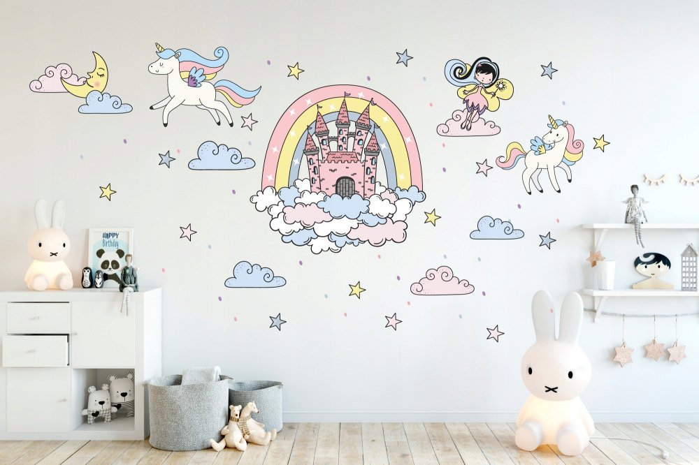 Rozprávková nálepka na stenu pre dievčatko víla a jednorožec