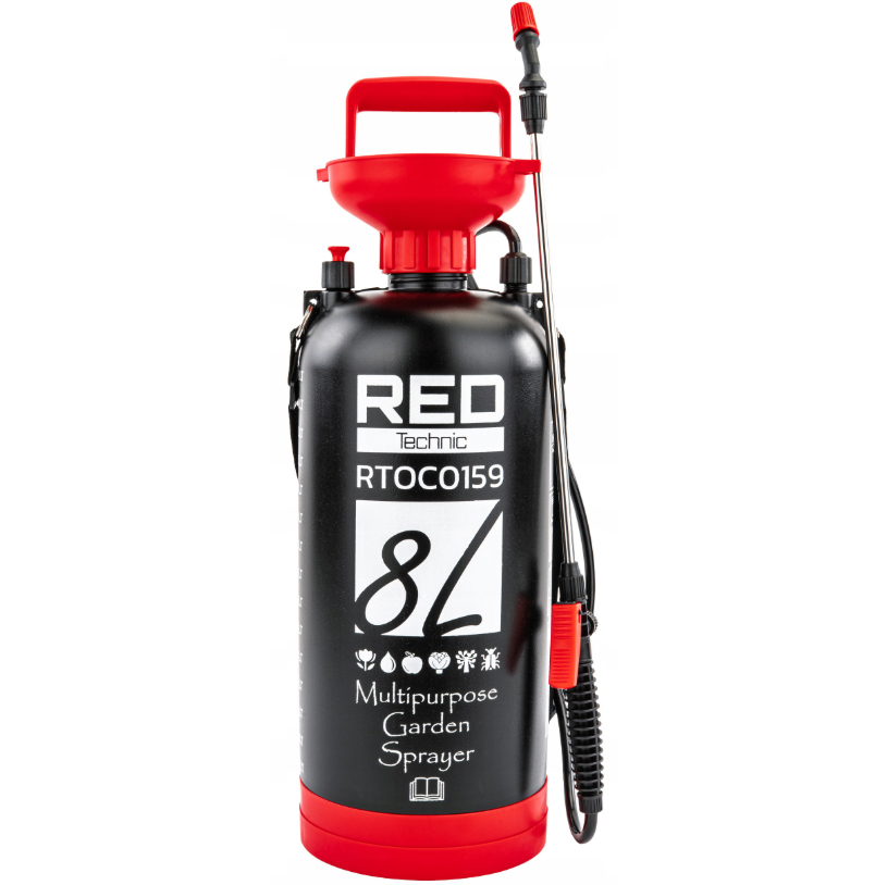Ručný postrekovač RED Technic RTOC0159 s objemom 8 litrov je spoľahlivé a všestranné zariadenie určené na aplikáciu prostriedkov na ochranu rastlín, listových hnojív, dezinfekčných a čistiacich roztokov, ako aj vody. Kvalitná nádoba so stabilnou základňou a širokým lievikom uľahčuje nalievanie kvapaliny bez rizika rozliatia.