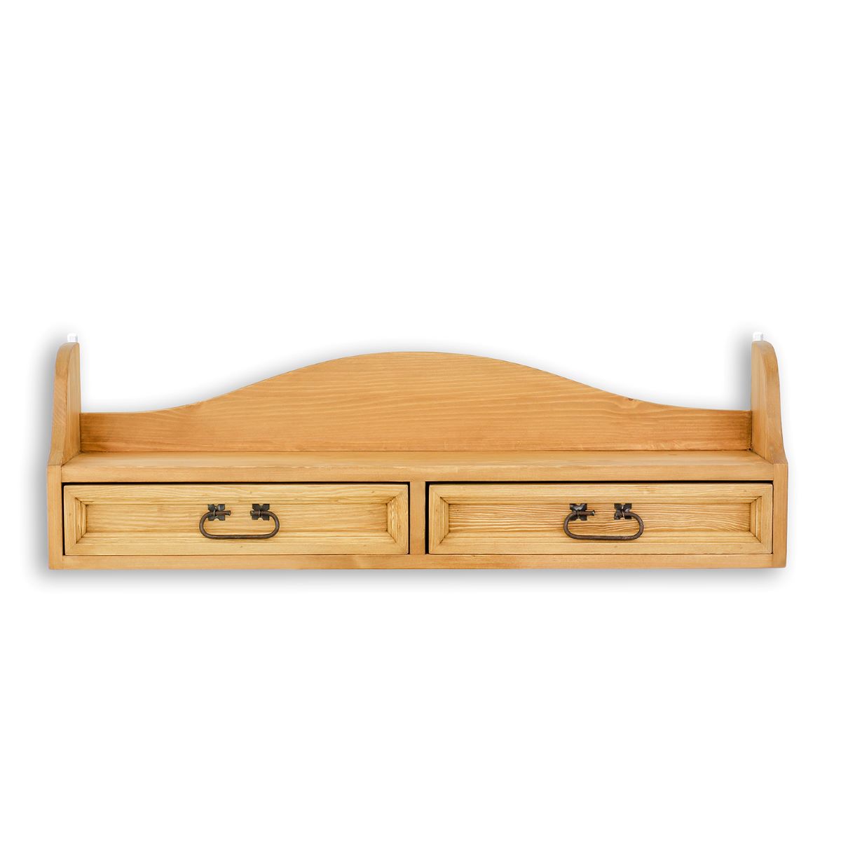 Voskovaná závesná polica Rustik PK703 v rustikálnom štýle je vyrobená z masívneho borovicového dreva. Skladá sa z otvorenej polici a dvoch praktických zásuviek namontovaných na drevených vodidlách. Pri výrobe boli použité ručne vyrobené kovové pánty a úchyty s efektom starnutia. Nábytok je pokrytý prírodným včelím voskom, ktorý vytvára ochrannú vrstvu proti vlhkosti, a zároveň sa stará o drevo. Vďaka ošetreniu voskovaním dokážeme zvýrazniť prirodzenú štruktúru dreva a prehĺbiť jeho prirodzenú farbu. Včelí vosk je prírodný produkt, voskovaný nábytok tak získava antistatické vlastnosti – menej sa na jeho povrchu usádza prach. Ďalšou výhodou voskovaného nábytku je jeho hodvábne hladký povrch a príjemná vôňa prírodného dreva.Rozmery (ŠxVxH): 100 x 29 x 15 cm.Nábytok dodávame zložený. V našej ponuke nájdete ďalšie prvky krásneho sektoru Rustik, vďaka ktorému si zariadite pracovňu, obývačku, či spálňu v jedinečnom štýle.