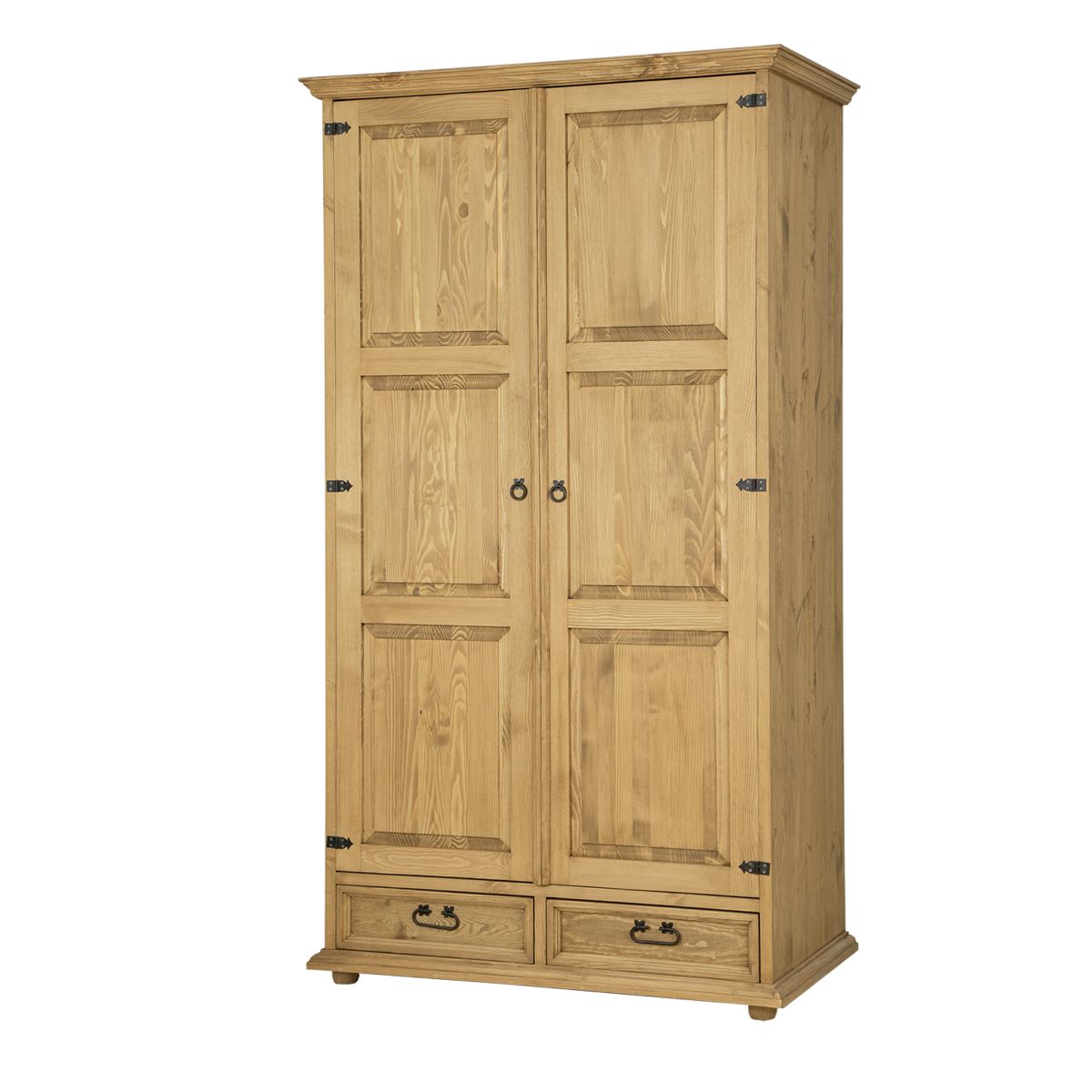 Dvojdverová voskovaná šatníková skriňa Rustik SF701 v rustikálnom štýle je vyrobená z masívneho borovicového dreva. Naľavo je šatníková tyč, napravo sú tri police. V spodnej časti skrine sú dve zásuvky na drevených vodidlách. Nábytok má pevnú a odolnú konštrukciu. Pri výrobe boli použité ručne vyrobené kovové pánty a úchyty s efektom starnutia. K skrini odporúčame dokúpiť nadstavbu Rustik SF704.Nábytok je pokrytý prírodným včelím voskom, ktorý vytvára ochrannú vrstvu proti vlhkosti, a zároveň sa stará o drevo. Vďaka ošetreniu voskovaním dokážeme zvýrazniť prirodzenú štruktúru dreva a prehĺbiť jeho prirodzenú farbu. Včelí vosk je prírodný produkt, voskovaný nábytok tak získava antistatické vlastnosti – menej sa na jeho povrchu usádza prach. Ďalšou výhodou voskovaného nábytku je jeho hodvábne hladký povrch a príjemná vôňa prírodného dreva.Rozmery (ŠxVxH): 107 x 195 x 60 cm.Nábytok dodávame zložený. V našej ponuke nájdete ďalšie prvky krásneho sektoru Rustik, vďaka ktorému si zariadite pracovňu, obývačku, či spálňu v jedinečnom štýle.