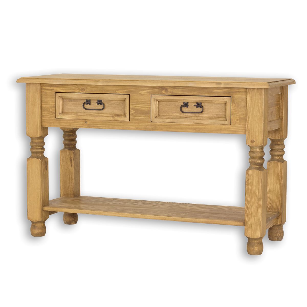 Voskovaný toaletný stolík Rustik LT700 je navrhnutý v rustikálnom štýle a je vyrobený výhradne z masívneho borovicového dreva. Je základným prvkom každého štýlového interiéru. Poslúži ako stolík napríklad do kancelárie, ale aj ako toaletný stolík do spálne. Má hrubé, sústružené nohy a dve praktické zásuvky, vysúvateľné na drevených vodidlách, ktoré sú ideálne na odkladanie kozmetiky a drobností. Toaletný stolík je navyše vybavený praktickou policou na rôzne druhy suvenírov, kníh alebo časopisov. Na výrobu boli použité ručne vyrobené kovové pánty a madlá s efektom starnutia. Viditeľná kresba zvýrazňuje krásu prírodného dreva. Stolík dodá každému interiéru jedinečnú atmosféru, plnú tepla a rodinnej atmosféry.Nábytok je pokrytý prírodným včelím voskom, ktorý vytvára ochrannú vrstvu proti vlhkosti, a zároveň sa stará o drevo. Vďaka ošetreniu voskovaním dokážeme zvýrazniť prirodzenú štruktúru dreva a prehĺbiť jeho prirodzenú farbu. Včelí vosk je prírodný produkt, voskovaný nábytok tak získava antistatické vlastnosti – menej sa na jeho povrchu usádza prach. Ďalšou výhodou voskovaného nábytku je jeho hodvábne hladký povrch a príjemná vôňa prírodného dreva.Rozmery (ŠxVxH): 120 x 74 x 45 cm.Nábytok dodávame zložený. V našej ponuke nájdete ďalšie prvky krásneho sektoru Rustik, vďaka ktorému si zariadite pracovňu, obývačku, či spálňu v jedinečnom štýle.