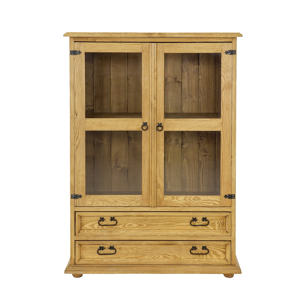 Voskovaná vitrína Rustik KD703 navrhnutá v rustikálnom štýle je vyrobená z masívneho borovicového dreva. Vrchná presklená časť má vo vnútri jednu policu, v spodnej časti sú dve veľké zásuvky. Pri výrobe boli použité ručne vyrobené kovové úchytky a pánty s efektom starnutia. Komoda má odolnú a pevnú konštrukciu.Nábytok je pokrytý prírodným včelím voskom, ktorý vytvára ochrannú vrstvu proti vlhkosti, a zároveň sa stará o drevo. Vďaka ošetreniu voskovaním dokážeme zvýrazniť prirodzenú štruktúru dreva a prehĺbiť jeho prirodzenú farbu. Včelí vosk je prírodný produkt, voskovaný nábytok tak získava antistatické vlastnosti – menej sa na jeho povrchu usádza prach. Ďalšou výhodou voskovaného nábytku je jeho hodvábne hladký povrch a príjemná vôňa prírodného dreva.Rozmery: (ŠxVxH): 100 x 140 x 50 cm.Nábytok dodávame zložený. V našej ponuke nájdete ďalšie prvky krásneho sektoru Rustik, vďaka ktorému si zariadite pracovňu, obývačku, či spálňu v jedinečnom štýle.