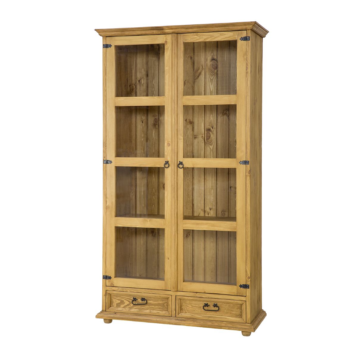Dvojdverová voskovaná vitrína Rustik KW704 je navrhnutná v rustikálnom štýle a je vyrobená z masívneho borovicového dreva. Za sklenenými dvierkami sú tri police, ktoré sú ideálne na uloženie jedálesnkých súprav, dekorácií, suvenírov alebo kníh. V spodnej časti vitríny sú dve zásuvky na drevených vodidlách. Nábytok má odolnú a pevnú konštrukciu. Pri výrobe boli použité ručne vyrobené kovové úchytky a pánty s efektom starnutia. Vitrína dodá každému interiéru jedinečnú atmosféru plnú tepla a útulnosti.Nábytok je pokrytý prírodným včelím voskom, ktorý vytvára ochrannú vrstvu proti vlhkosti, a zároveň sa stará o drevo. Vďaka ošetreniu voskovaním dokážeme zvýrazniť prirodzenú štruktúru dreva a prehĺbiť jeho prirodzenú farbu. Včelí vosk je prírodný produkt, voskovaný nábytok tak získava antistatické vlastnosti – menej sa na jeho povrchu usádza prach. Ďalšou výhodou voskovaného nábytku je jeho hodvábne hladký povrch a príjemná vôňa prírodného dreva.Rozmery (ŠxVxH): 107 x 195 x 43 cm.Nábytok dodávame zložený. V našej ponuke nájdete ďalšie prvky krásneho sektoru Rustik, vďaka ktorému si zariadite pracovňu, obývačku, či spálňu v jedinečnom štýle.