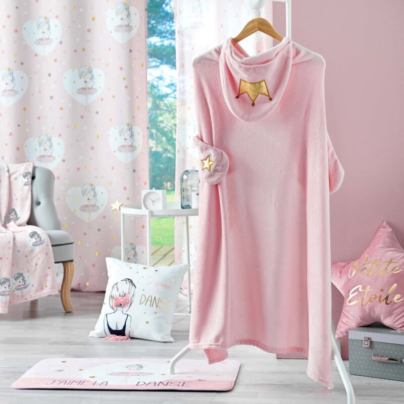 Ružová detská deka s kapucňou z mikroflanelu 100×120 cm Ariel – douceur d’intérieur
