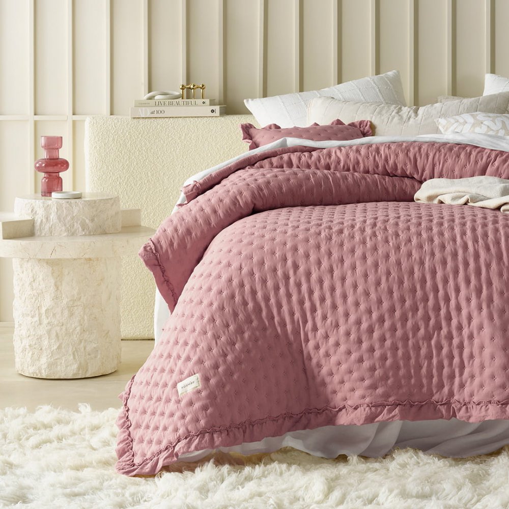 Ľahký a hrejivý prehoz poteší jemným prešívaním a pôvabným volánom, ktorý zdobí jeho boky. Prináša ducha jemnej elegancie a je presne tým, čo potrebujete na vytvorenie absolútne upokojujúcej nálady vo Vašej spálni. Ultra jemný a zmyselný. Objednajte si a podľahnite jeho šarmu!