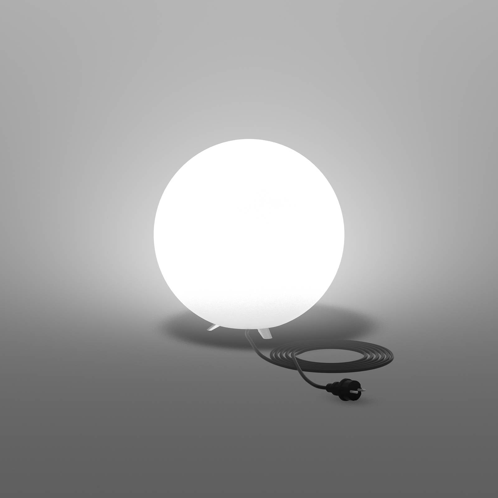 Opálová dekoratívna guľa na vonkajšie použitie, so zásuvkou E27 a zástrčkou Toto guľové svetlo je univerzálnou, modernou možnosťou svetelnej dekorácie v záhrade alebo na terase. Je vyrobená z opálového matného polyetylénu a na vnútornej strane má zásuvku E27, do ktorej možno namontovať svetelný zdroj podľa vlastného výberu (pozri príslušenstvo). Vďaka RGB žiarovke je táto dekoratívna guľa dokonalým doplnkom na záhradnú párty. Dekoratívne svetlo je vybavené nožičkami a prívodným káblom na pripojenie do zásuvky. Uzemňovací hrot na ukotvenie je možné zakúpiť samostatne (pozri príslušenstvo) – Stupeň ochrany: IP54 – Odolnosť proti nárazu: IK06