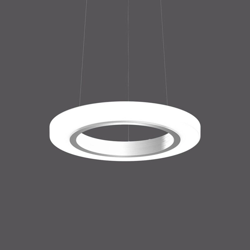 LED závesné svietidlo Ring of Fire od spoločnosti RZB v tvare kruhu s valcovým pripojeným difúzorom Hodvábne matné opálové sklo difúzora fúkaného ústami, ktoré rastie na vonkajšej strane vo forme valca, je kombinované s vnútorným prstencom z prírodne eloxovaného hliníka. Vďaka tomuto dizajnu vyzerá závesné svietidlo Ring of Fire mimoriadne moderne a elegantne. Svetlo integrovaných LED diód je rovnomerne rozptýlené opálovým sklom. Svetelný výstup možno v prípade potreby ovládať prostredníctvom externých stmievačov cez DALI. Ohnivý kruh je plynule výškovo nastaviteľný od 50 do 120 cm, s napájaním prostredníctvom drôteného prívesku. Ak sa dĺžka závesu predĺži na viac ako 2 m (k dispozícii na požiadanie), napájanie sa musí zabezpečiť samostatným prívodným káblom. Svietidlo umožňuje aj integráciu senzorov TouchDim, jasu a prítomnosti.