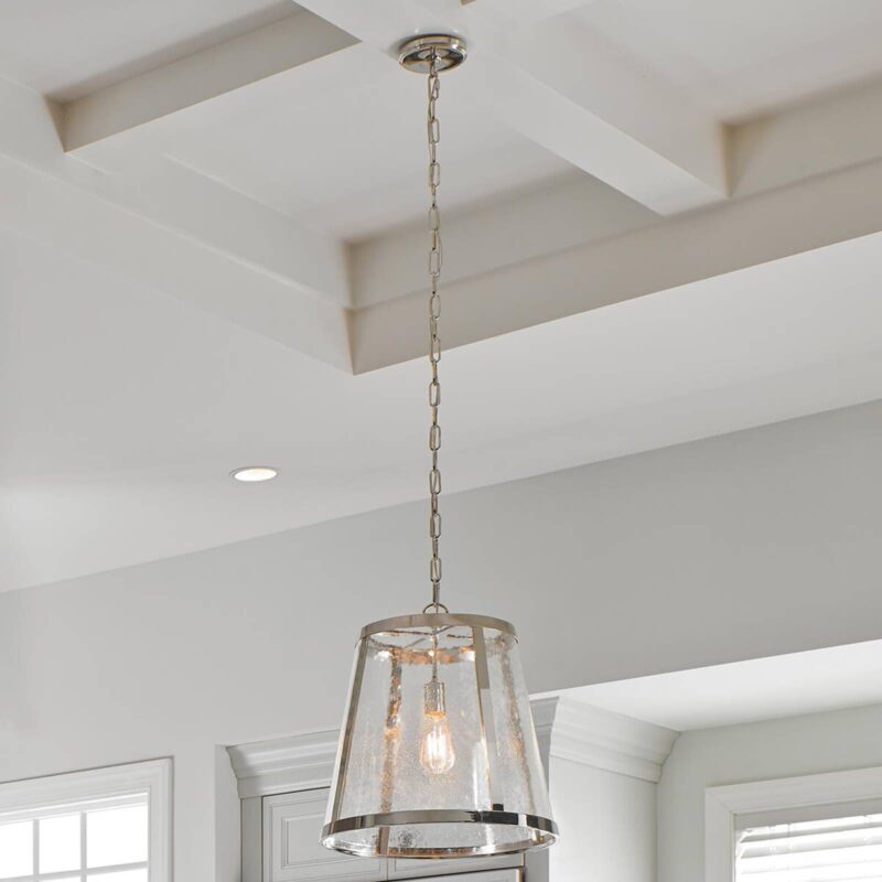 Závesná lampa Brána so štruktúrovaným sklom Dávkovače svetla s priemyselným vzhľadom sa hodia nielen k zariadeniu zodpovedajúceho štýlu, ale aj k atraktívnym akcentom v celom modernom obývacom priestore. Závesné svetlo Harrow je toho dobrým príkladom: so zavesením reťaze a tienidlom zo skla s kovovým rámom sa hodí k mnohým usporiadaniam bývania a vďaka ľahkej štruktúre zabudovanej do skla vyžaruje jemné svetlo. s veľmi útulným svetelným efektom. Svetelné zdroje v retro dizajne, ktoré zvyšujú dekoratívnu hodnotu tohto krásneho závesného svetla, je možné dokúpiť pomocou príslušenstva.