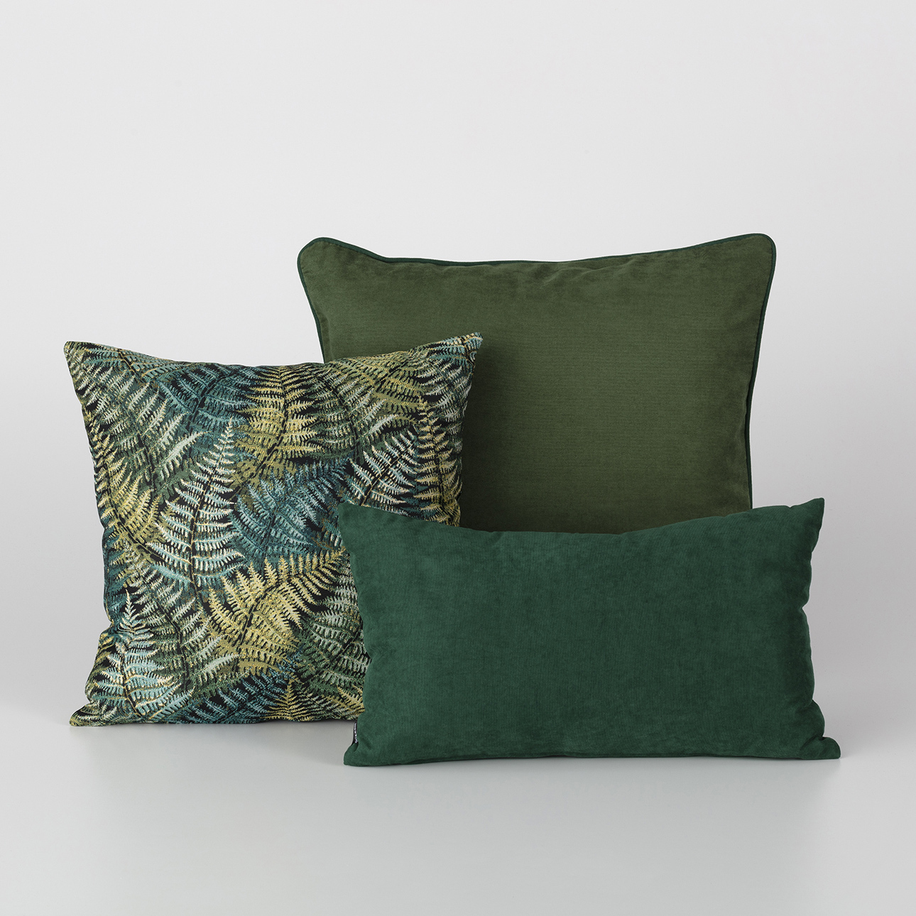 Sada 3 dekoračných vankúšov Fern Flower green II, 55×55/50×50/52×33 cm