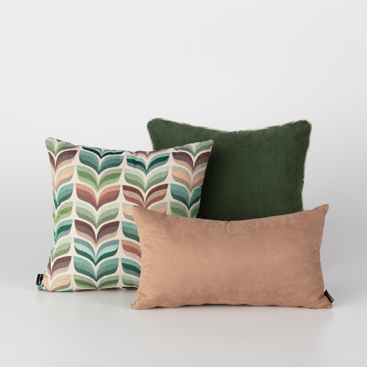Sada 3 dekoračných vankúšov Homely Folk green I, 50×50/52×33 cm