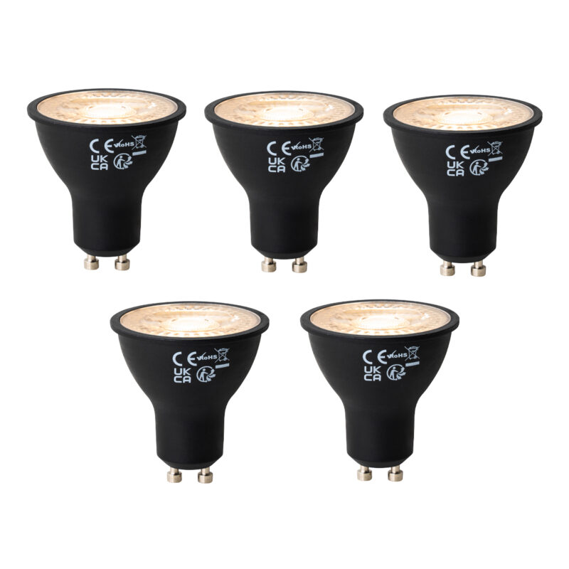 Sada 5 GU10 3-krokovo stmievateľných LED žiaroviek čierna 6W 4300 lm 2000 – 6000K