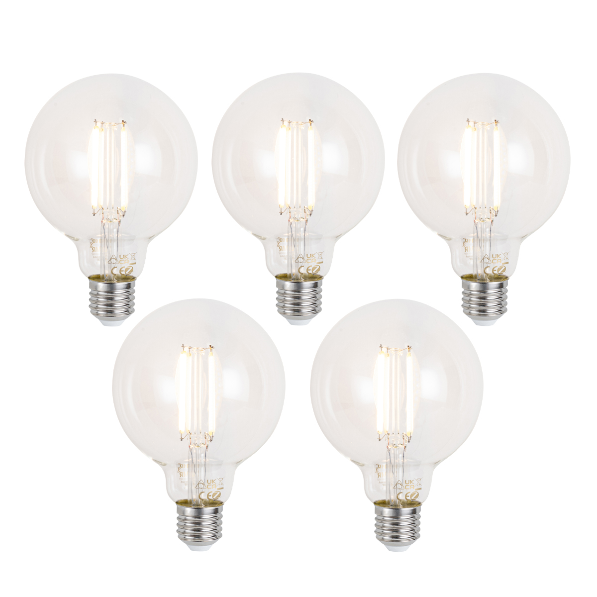 Sada 5 ks Inteligentné stmievateľné LED žiarovky E27 G95 číre 7W 806lm 2700-6500K