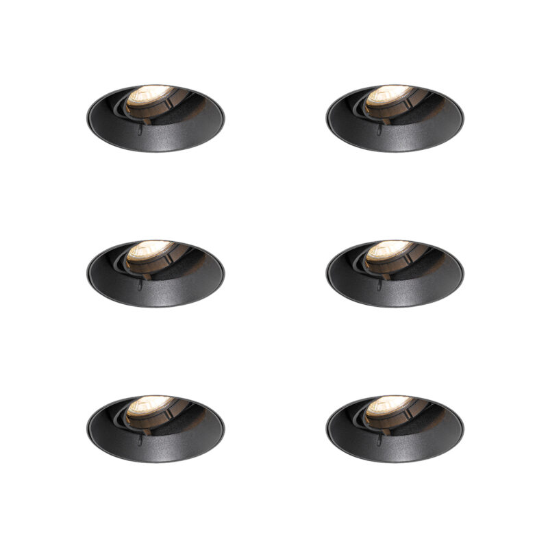 Sada 6 moderných zapustených bodových svetiel čierna GU10 okrúhla bezrámová – Oneon