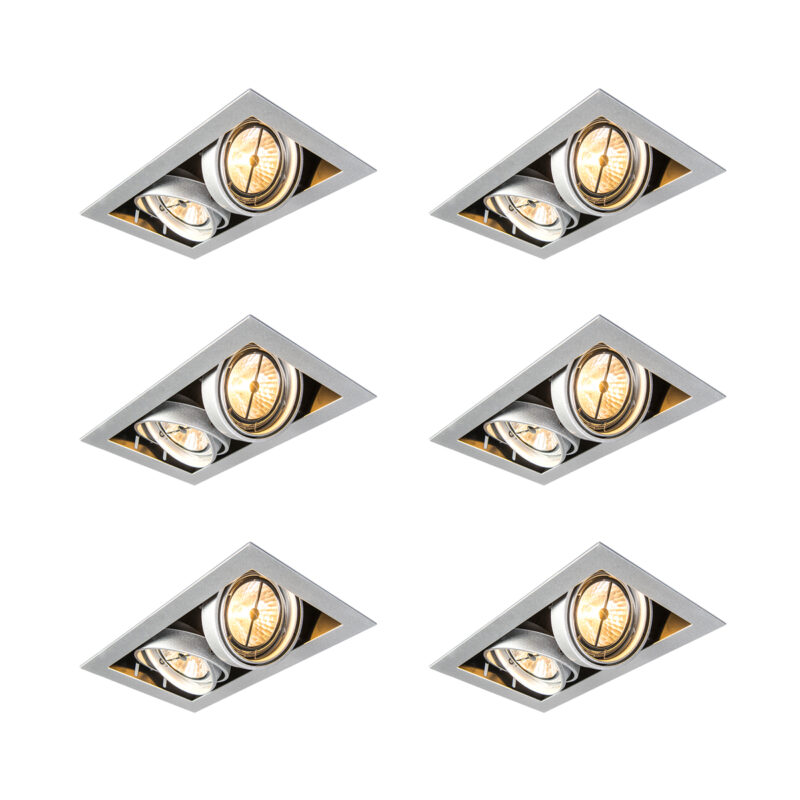 Sada 6 zapustených bodových svetiel oceľ AR111 nastaviteľné 2-svetlá – Oneon