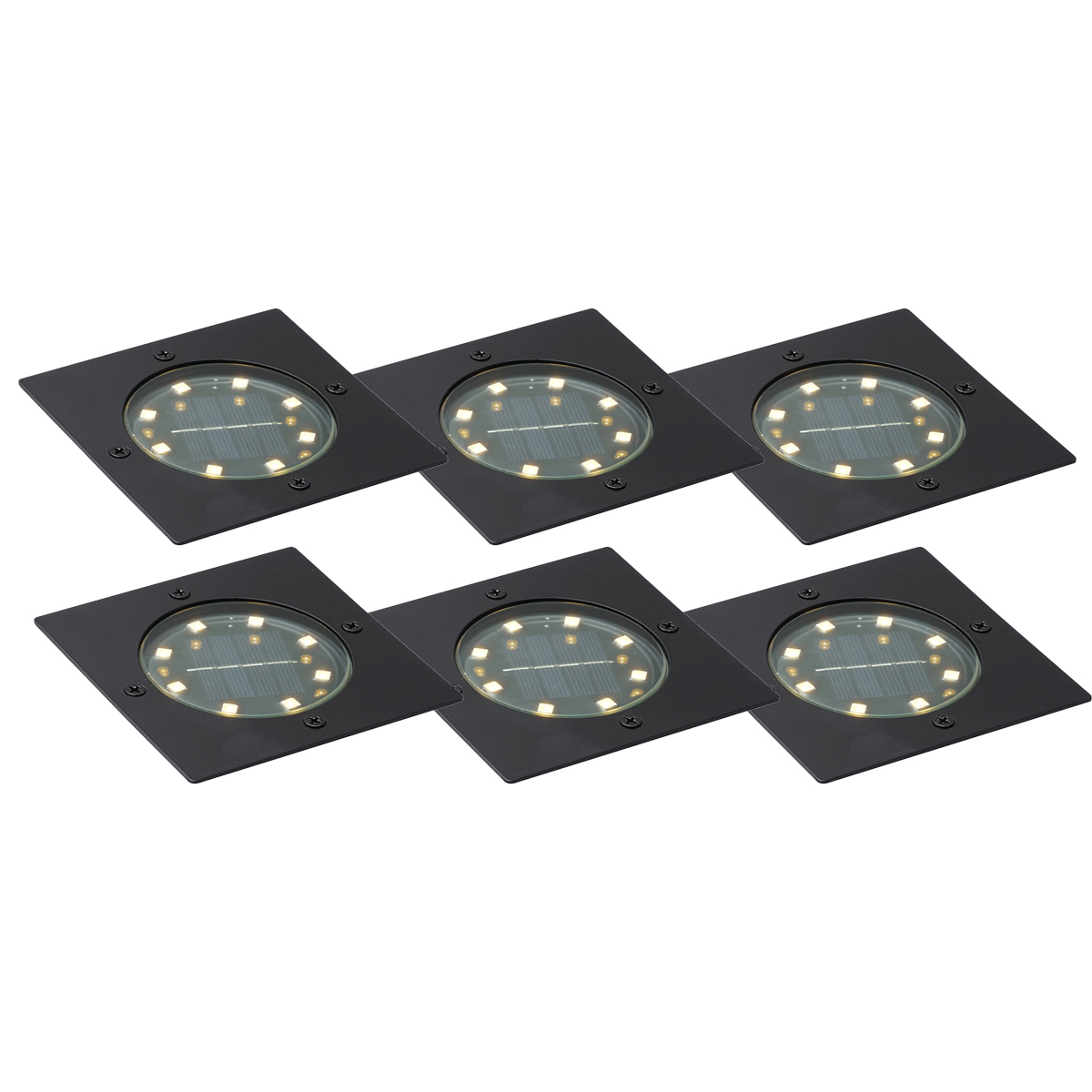 Sada 6 zemných bodových svetiel čierna štvorcová vrátane LED IP65 solárne – Terry