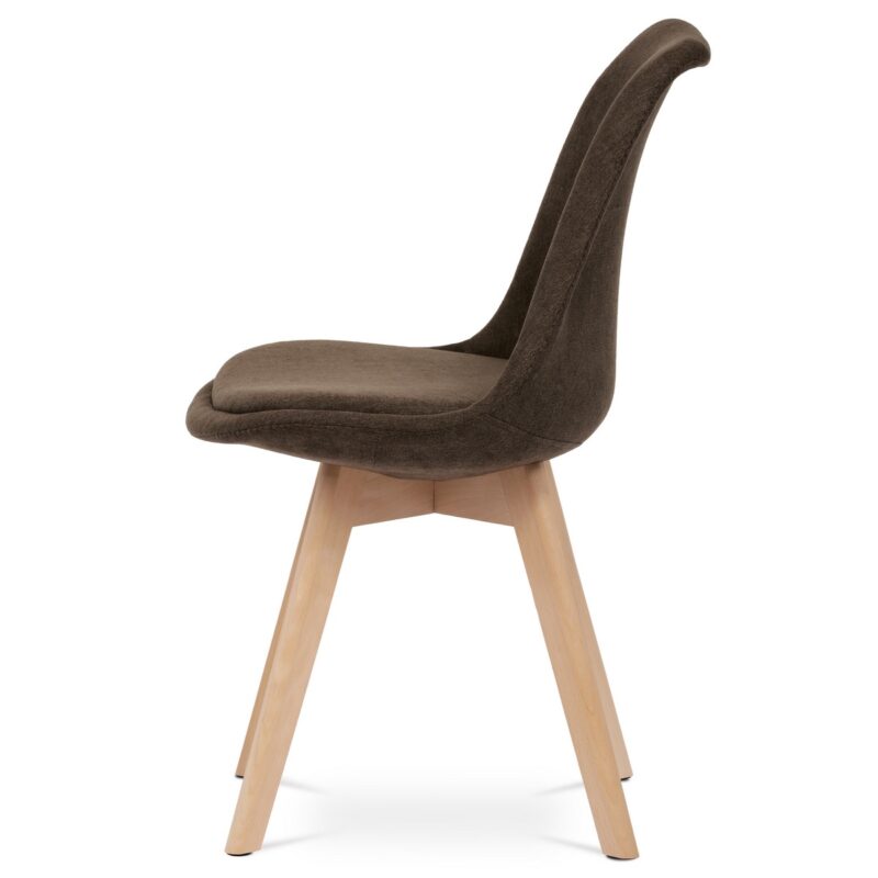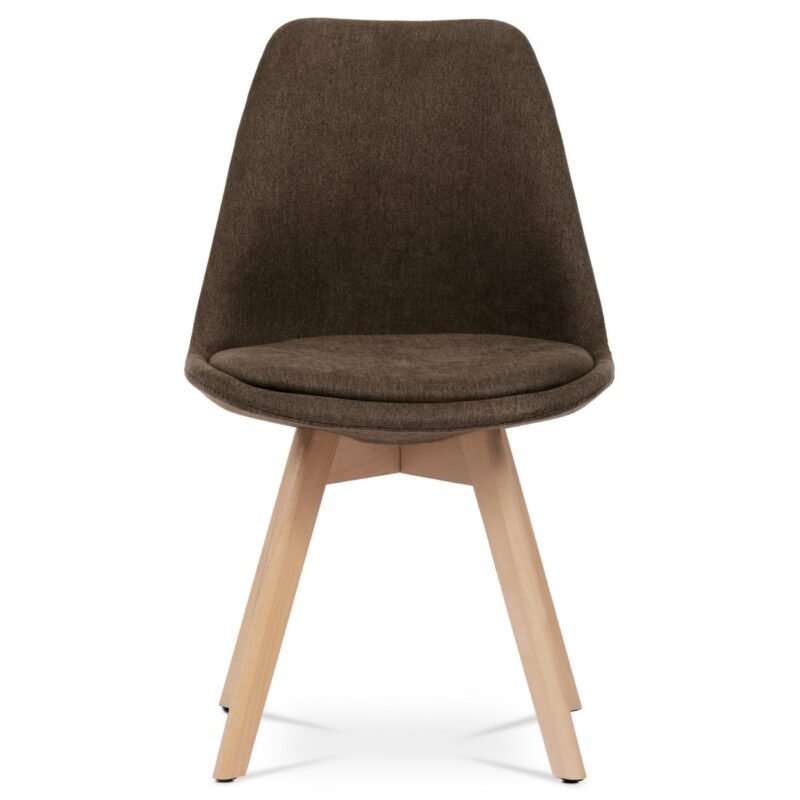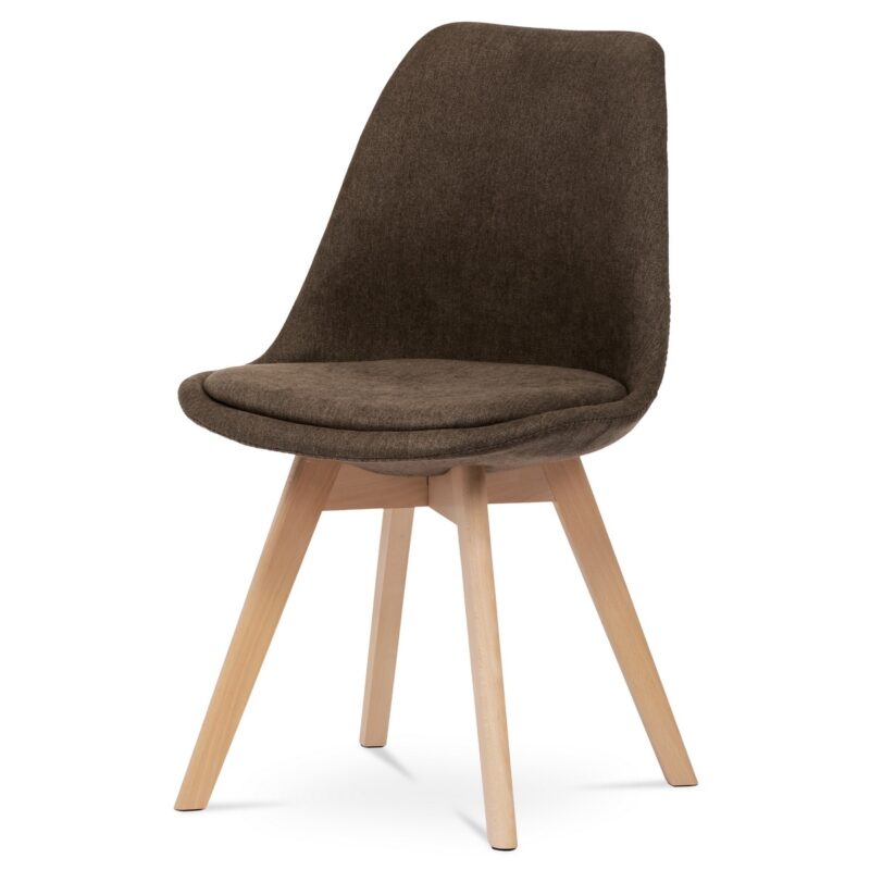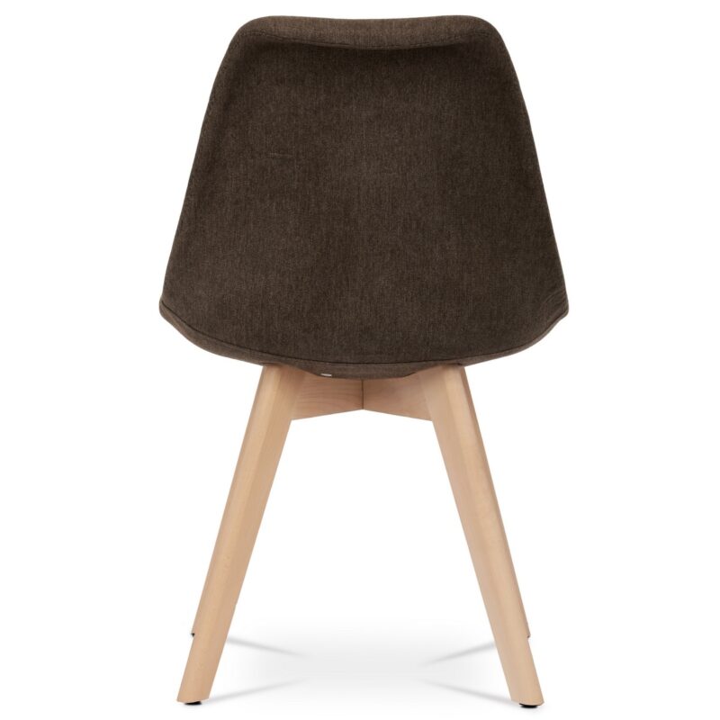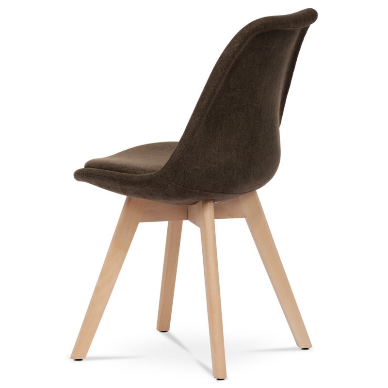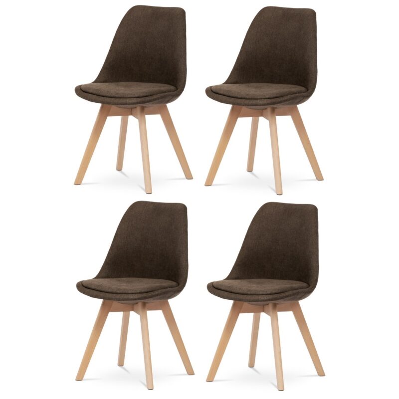 Sada 4 jedálenských stoličiek v elegantnom škandinávskom štýle je ideálnou voľbou pre tých, ktorí hľadajú spojenie komfortu, prírodných materiálov a moderného vzhľadu. Tieto stoličky zaujmú tvarovaným čalúneným telom v hnedej farbe, ktoré príjemne obopína telo a zaisťuje pohodlné sedenie aj pri dlhšom posedení pri stole. Sedák i opierka sú bohatá čalúnené a farebne zladené, čím vytvárajú vizuálne čistý a harmonický celok.Konštrukcia stoličky je podopretá štyrmi nohami z masívneho bukového dreva v prírodnom odtieni. Tento materiál nielen dodáva stoličkám stabilitu a pevnosť, ale zároveň vnáša do interiéru prírodný teplý tón a kontrastuje s hnedým čalúnením. Vďaka jemne kužeľovitému tvaru nôh pôsobí konštrukcia vzdušne a elegantne, bez straty pevnosti. Plastové kĺzačky na spodnej časti nôh chránia podlahu pred poškriabaním a uľahčujú manipuláciu so stoličkou.Vďaka kombinácii ergonomického tvarovania, kvalitných materiálov a univerzálneho dizajnu sa tieto stoličky skvele hodia nielen do kuchýň a jedální, ale aj do domácich pracovní, obývačiek či štýlovo zariadených kancelárskych priestorov. Skandinávsky dizajn podčiarkuje prirodzenosť a jednoduchosť, ktorá vynikne v každom modernom interiéri.Parametre: