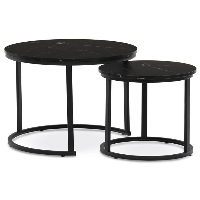 Sada dvoch konferenčných stolíkov značky Autronic v industriálnom štýle prinesie do vašej obývačky eleganciu a praktickosť. Dosky z MDF s dekorom čierneho mramoru v kombinácii s čiernymi kovovými nohami vytvárajú štýlový kontrast. Kruhový dizajn a možnosť menšieho stolíka ľahko umiestniť pod väčší ponúka flexibilitu pre úsporu miesta. Matný povrch dosky je ľahko udržiavateľný a odolný voči poškodeniu. Tento set je ideálny ako pre menšie priestory, tak pre interiéry, kde vynikne svojím moderným vzhľadom a funkčným dizajnom.Rozmery stolíkov: