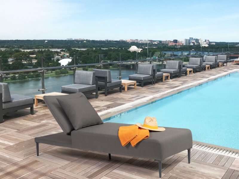 Minimalistické lehátko Saint Tropez v sivej farbe.