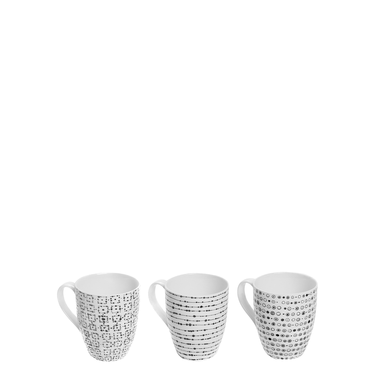 Set porcelánových šálok z línie Basic Dots vhodné na mlieko, čaj alebo cappuccino. Moderný bodkový vzor na bielom porceláne dodáva šmrnc do každej kuchyne. Je vhodný do umývačky riadu aj mikrovlnnej rúry.