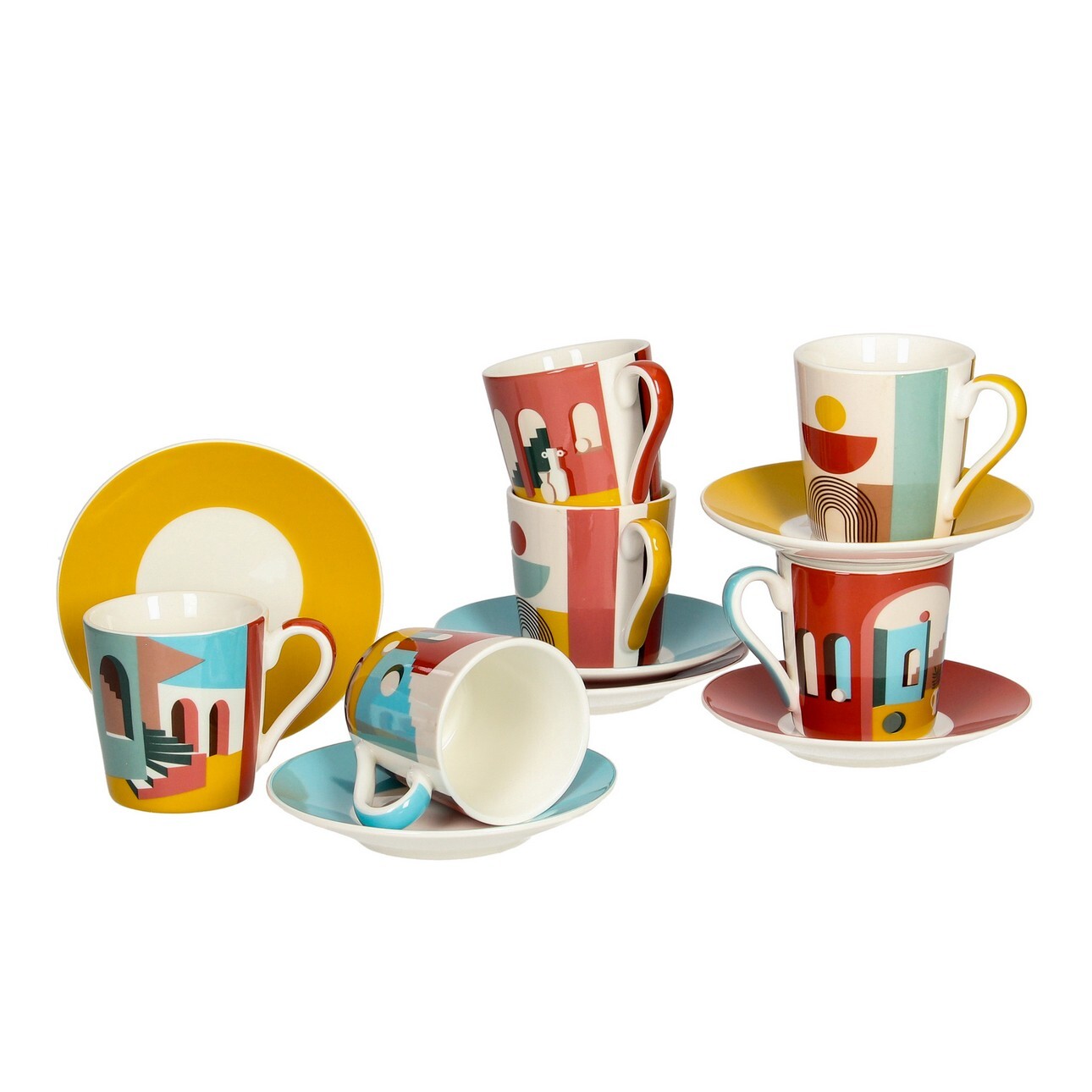 Súprava šálok na espresso s podšálkou z porcelánu. Žiarivé farby a originálny dizajn robia z podávania aromatickej kávy radosť. Šálky na kávu Abstractio sú skvelým nápadom na darček na rôzne príležitosti, ideálne pre milovníkov kávy!