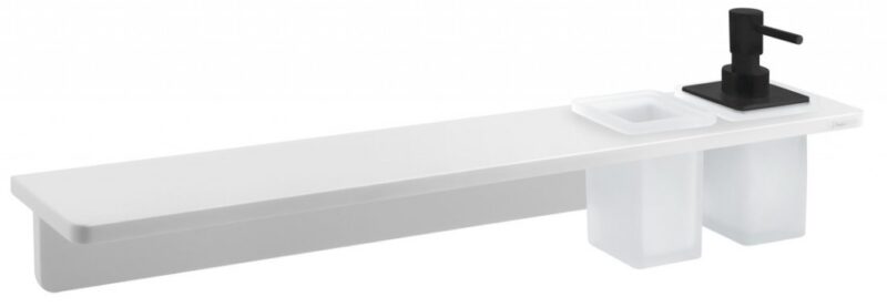 SAPHO – ABELINE polica, pohár + dávkovač/čierna, 600, Rockstone, biela mat AE602-0101-03