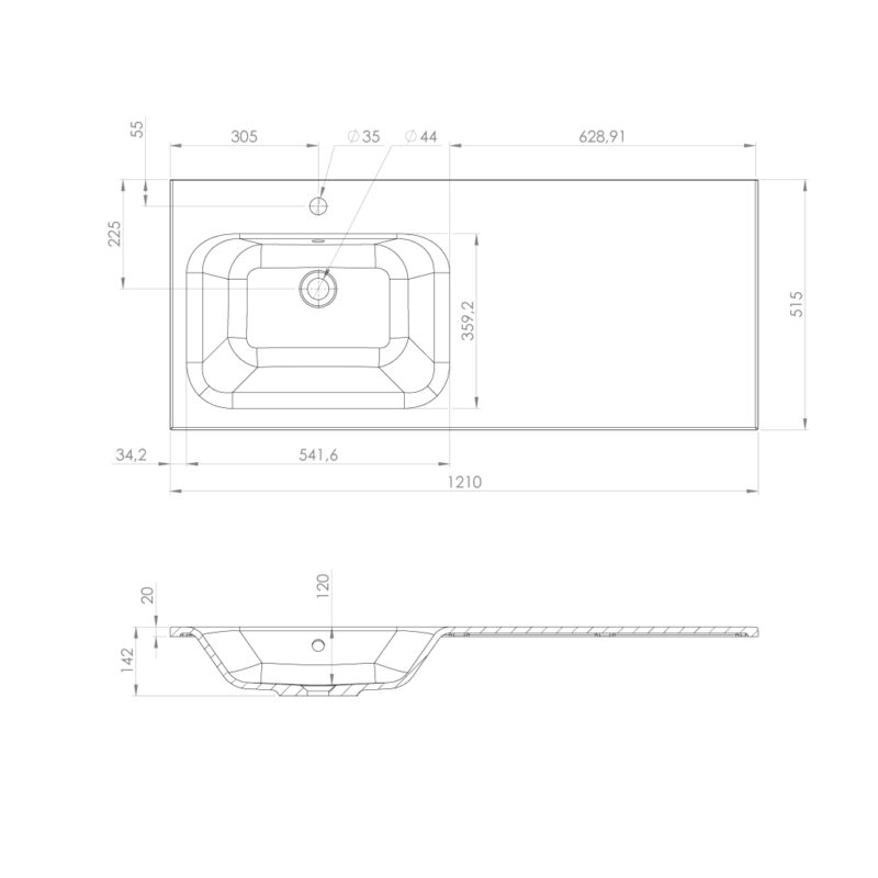 SAPHO – ARECA umývadlo 121×51,5cm, liaty mramor, ľavé, biela AC121L