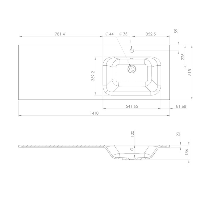 SAPHO – ARECA umývadlo 141×51,5cm, liaty mramor, pravé, biela AC141R