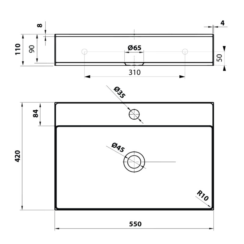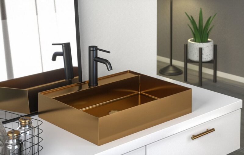 SAPHO – AURUM nerezové nástenné umývadlo 55x42cm, vrátane výpuste, meď mat AU302