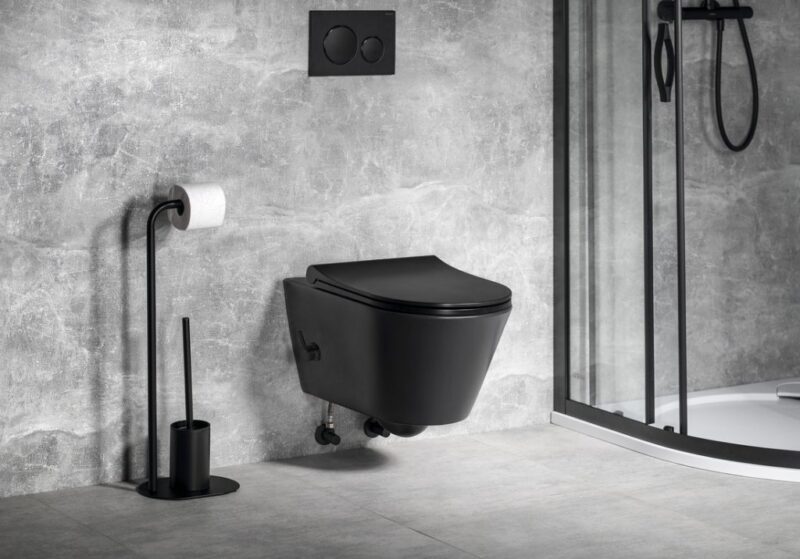 SAPHO – AVVA CLEANWASH závesná WC misa, integrovaná batéria a bidetová spŕška, Rimless, 35,5x53cm, čierna mat 100315-110