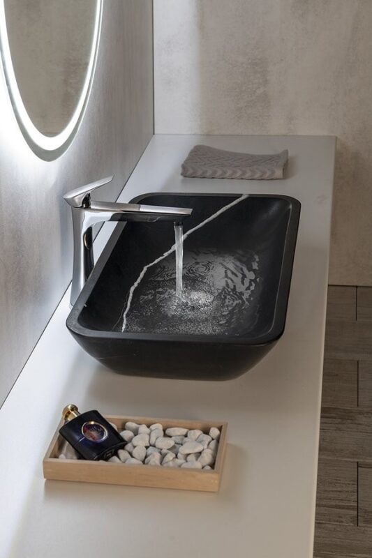 Textura kamenných umyvadel je u každého kusu originální. Není určeno pro venkovní použití. Tip: Doporučujeme použít podložku mezi umyvadlo a desku, která umožňuje snazší upevnění a utěsnění umyvadel na desku, kde umyvadla ve spodní části nemají rovnou plochu. V horní i spodní části podložky je průhledné těsnění. Podložkou pak prochází výpust. Pro umyvadla bez přepadu doporučujeme uzavíratelnou nebo neuzavíratelnou výpust s delším šroubením, s možností zkrácení podle tloušťky desky.Kamenná umyvadla jsou novým trendem v použití přírodních materiálů při zařizování koupelen. Přitažlivý design a funkčnost těchto výrobků splňují nároky moderního bydlení. Jedinečná textura přírodního kamene umyvadel BLOK dodá interiéru potřebnou originalitu. Design výrobků navíc umožňuje kombinaci různých stylů. Ean: 8590913882104