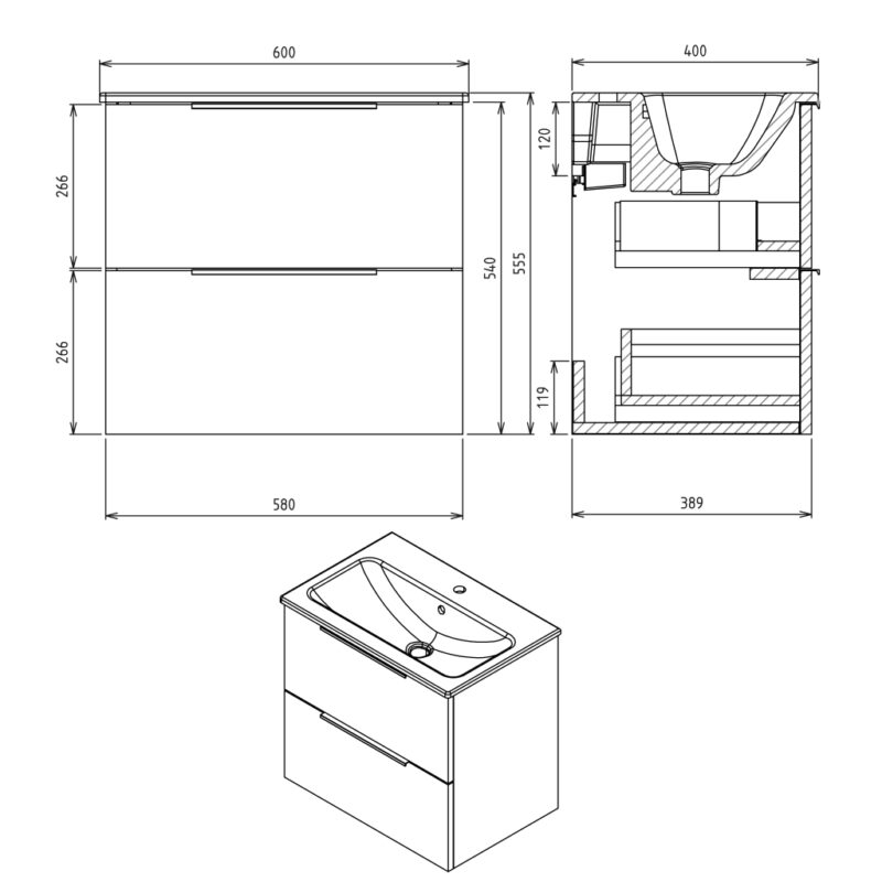 SAPHO – CIRASA umývadlová skrinka 58x54x39cm, biela lesk CR592-3030