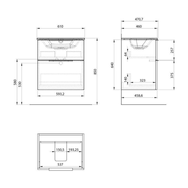 SAPHO – CIRASA umývadlová skrinka 59,2x64x46cm, dub Alabama CR601-2222