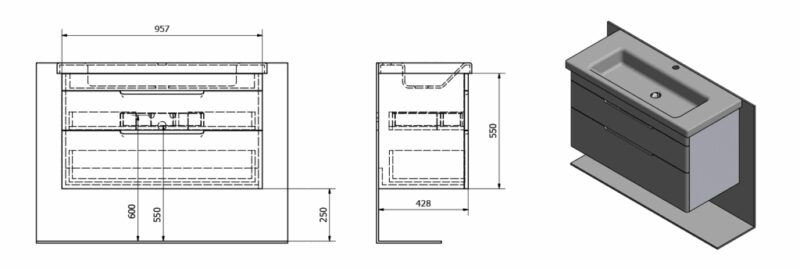 SAPHO – ELLA umývadlová skrinka 95,7x50x42,8cm s umývadlom CITY, biela (70100) EL100-3030-01