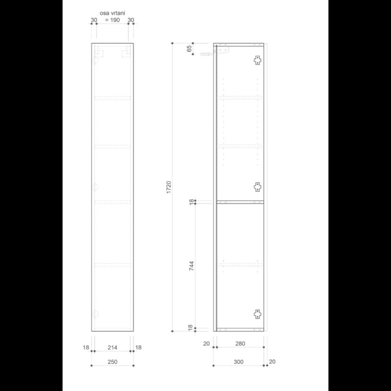 SAPHO – ESPACE skrinka 25x172x32cm, 1x dvierka, ľavá/pravá, dub Alabama ESC120-2222