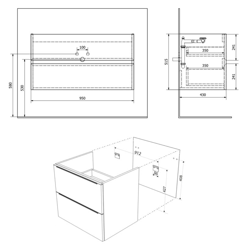 Domovská stránka » Katalóg » SAPHO – FILENA umývadlová skrinka 95×51,5x43cm, čierna mat strip FID1210BS