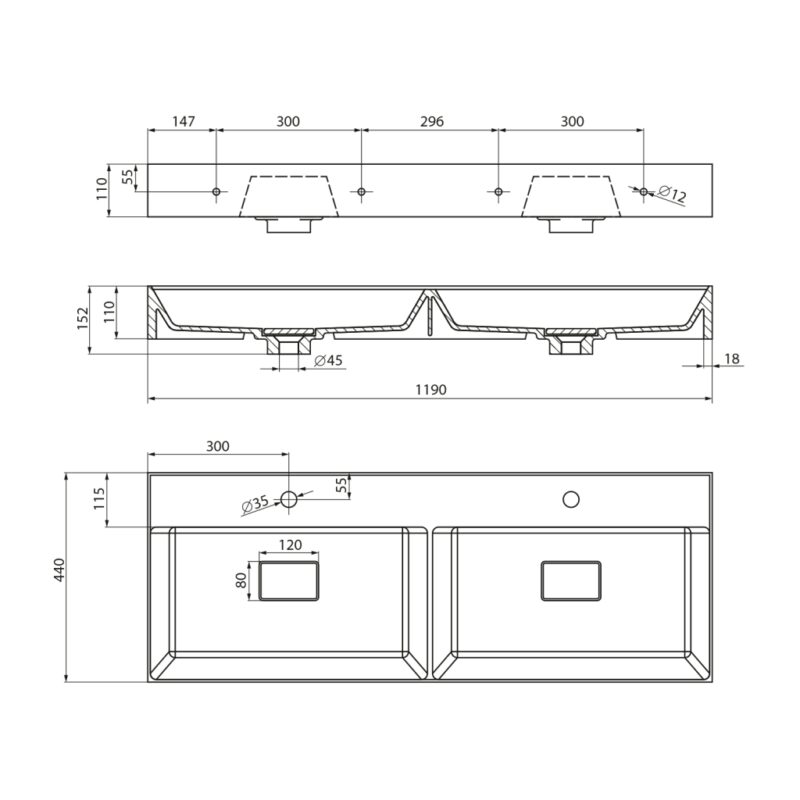 SAPHO – GODIVA dvojité umývadlo, liatý mramor, 119x44cm, biela GU119