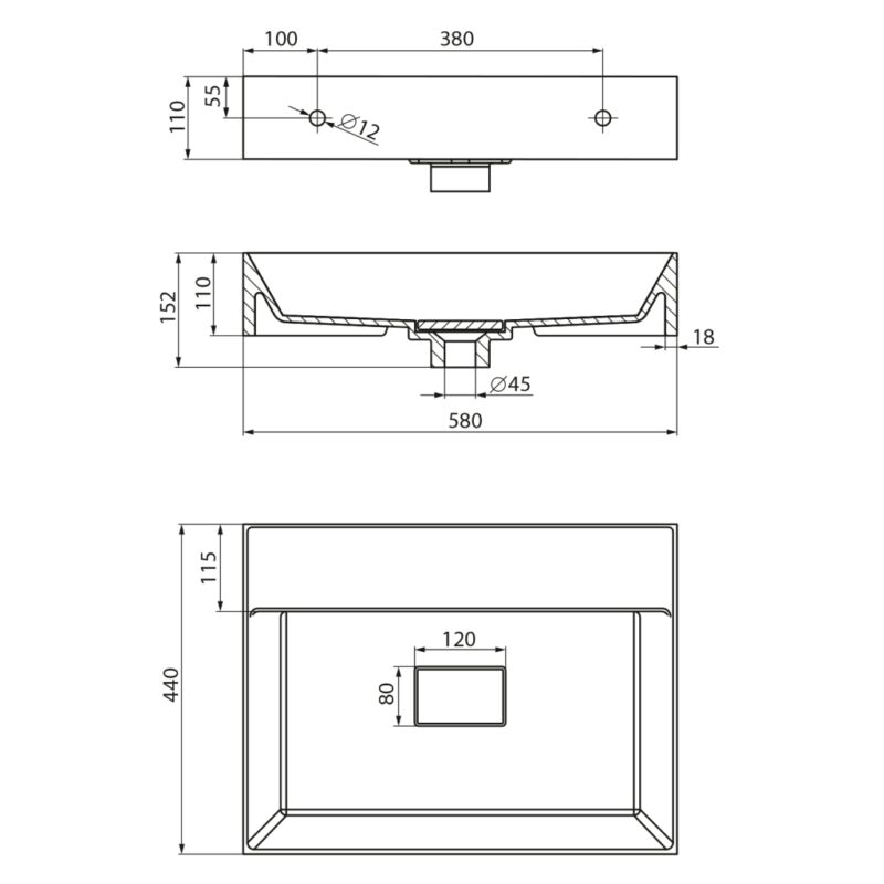 SAPHO – GODIVA umývadlo, liatý mramor, 58x44cm, bez otvoru, biela GU058-0