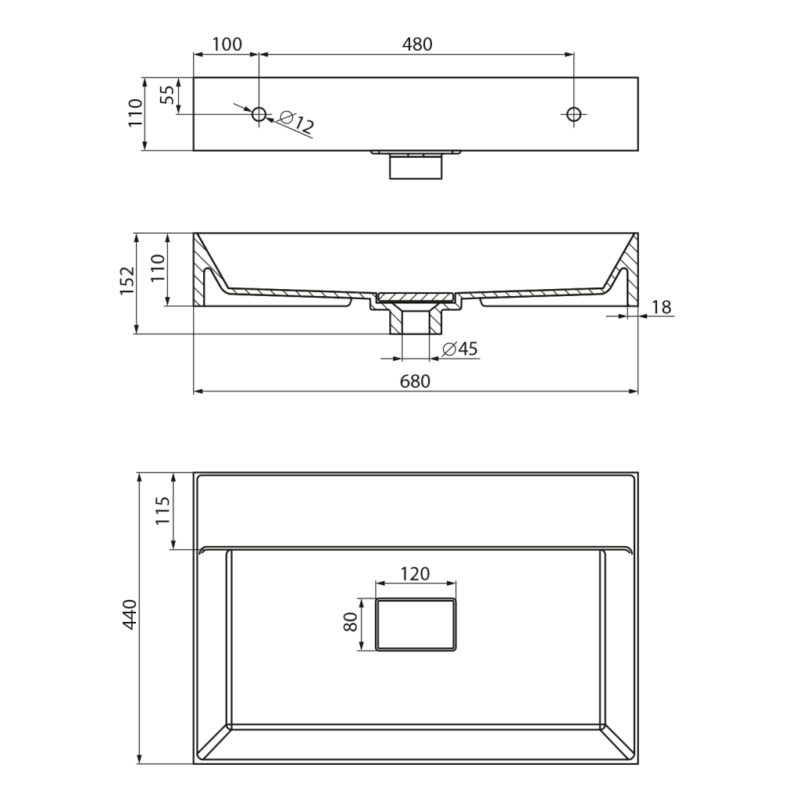 SAPHO – GODIVA umývadlo, liatý mramor, 68x44cm, bez otvoru, biela GU068-0