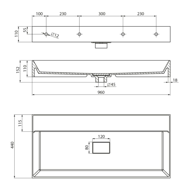 SAPHO – GODIVA umývadlo, liatý mramor, 96x44cm, bez otvoru, biela GU096-0