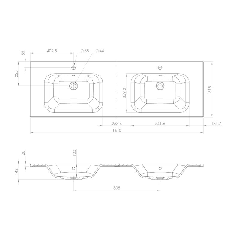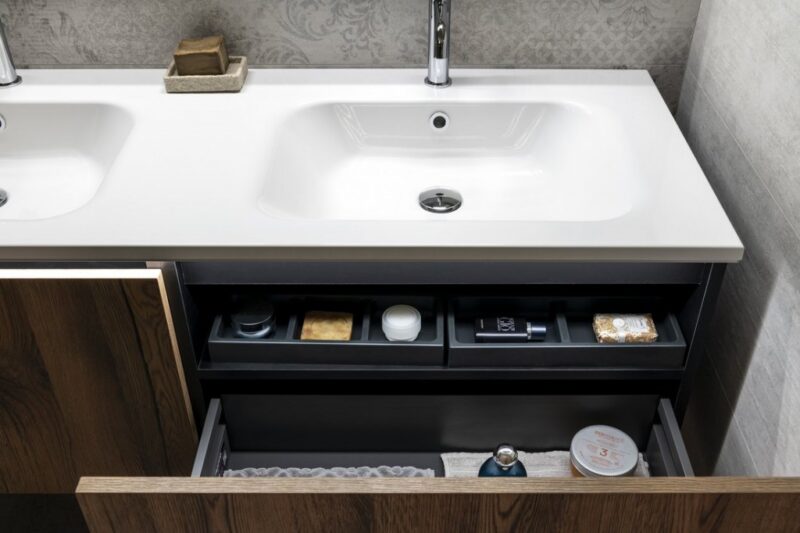 SAPHO – LOREA skrinka s dvojumývadlom 161x46x51,5cm (80+80cm), dub alabama/biela matná LE080-2231-02