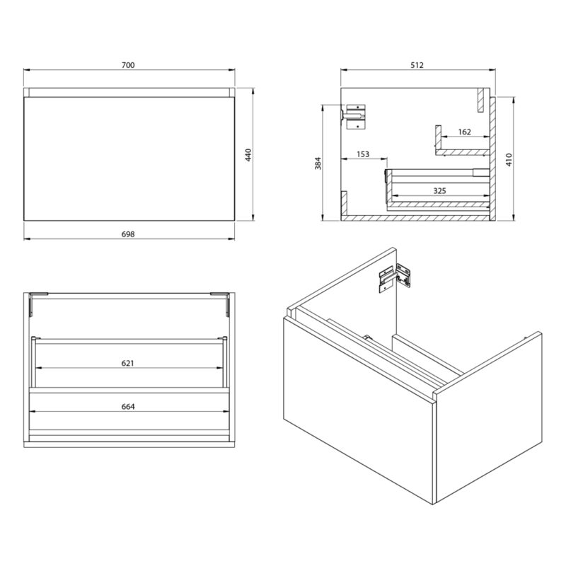 Nábytok je vybavený pojazdy zásuviek s pomalým dojazdom a systémom automatického dovretí zásuviek. Už žiadne hlučné zatváranie. Ean: 8590913977985