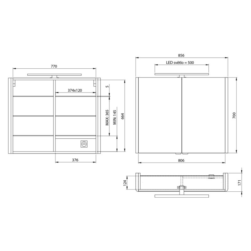 SAPHO – LUCIE galérka s LED osvetlením, 86x70x17cm, biela LU085-0030