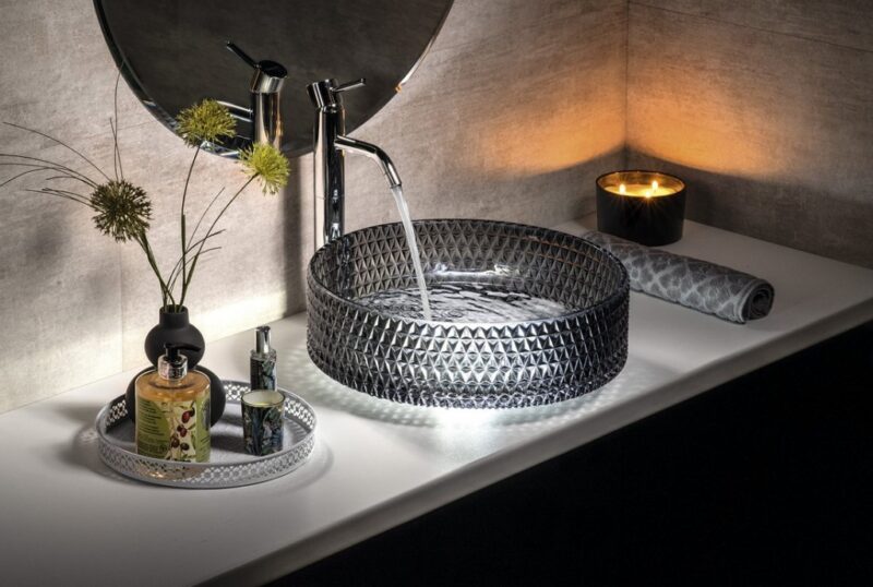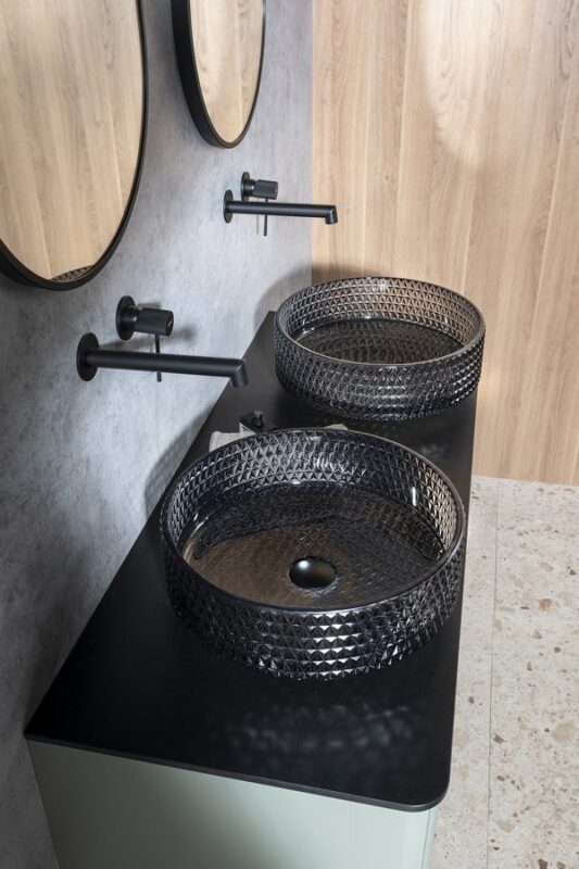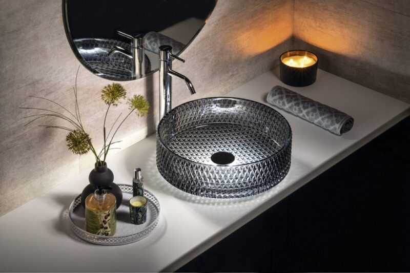 Kvalitní SAPHO – MARAGUA gravírované sklenené umývadlo na dosku priemer 39,5cm, čierna TY214 za 236.2 €.