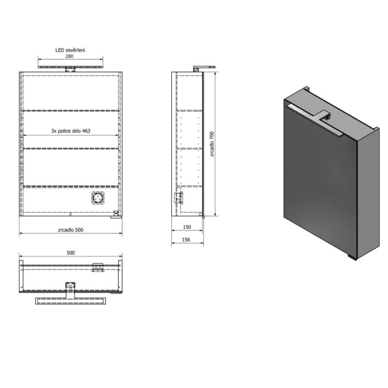 SAPHO – MIRRÓ galérka s LED osvetlením, 50x70x16cm, ľavá/pravá, biela MC050-0030