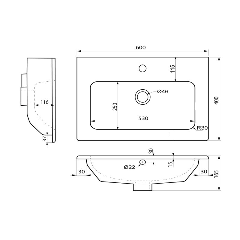 Domovská stránka » Katalóg » SAPHO – PRACTICO keramické umývadlo nábytkové 60x40cm, biela 44060