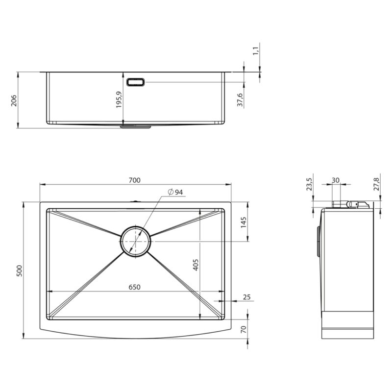 SAPHO SAPHO – AMERICAN polozapustený nerezový drez 70x50cm, gun metal ZN7050B