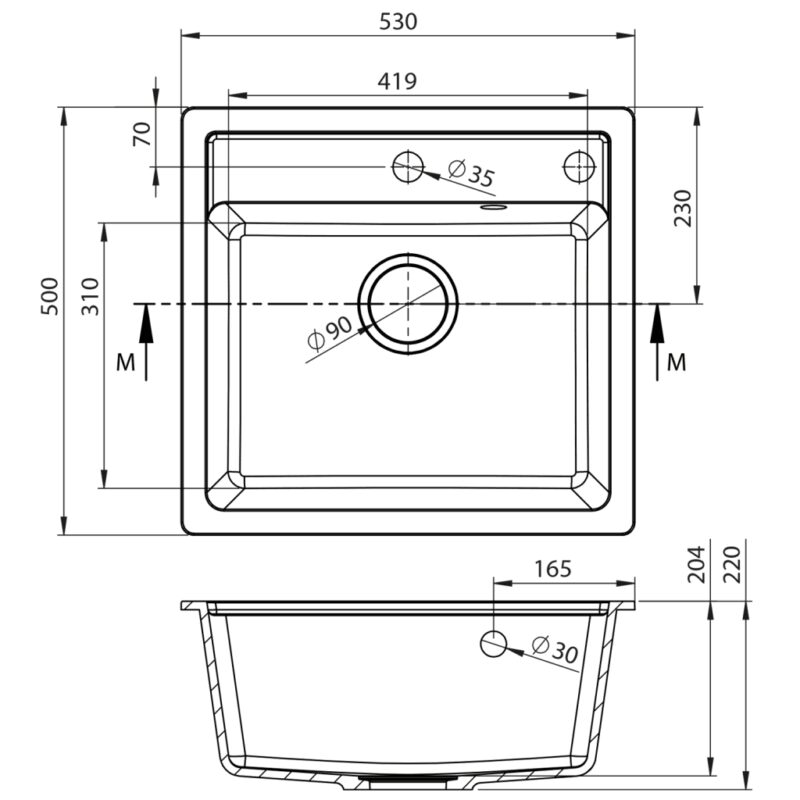 SAPHO SAPHO – Granitový vstavaný mono drez, 53x50cm, biela GR1031