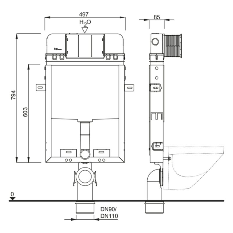 Spôsob inštalácie Na inštaláciu na alebo do pevných vymurovaných stienVlastnosti Pozinkovaný WC prvok s predmontovanou nádržkou Predné splachovanie (3/6 l) Nastaviteľný objem splachovania (veľké splachovanie 4-7 l, malé splachovanie 2-3 l) Vodovodná prípojka – hore uprostred Plne izolované proti kondenzáciiŠpeciálne funkcie Tichý hydraulický plniaci ventil (trieda hluku 1 ISO 3822)Produkt obsahuje Splachovacia nádrž pod omietku vybavená predinštalovaným uzatváracím a napúšťacím ventilom Pripojenie vody 1/2″ PE odtokové koleno DN 90 mm s tesnením PE adaptér DN 90/110 mm s tesnením Kompletný montážny a upevňovací materiálEN 14055 Ean: 8681282614738