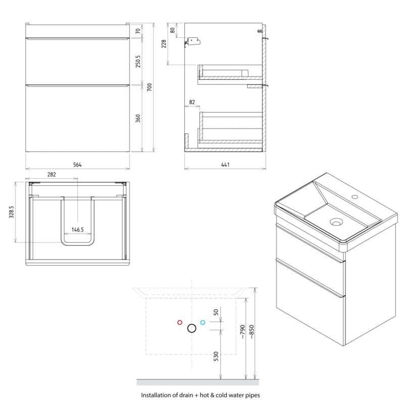 SAPHO – SITIA umývadlová skrinka 56,4x70x44,2cm, 2x zásuvka, borovica rustik SI060-1616